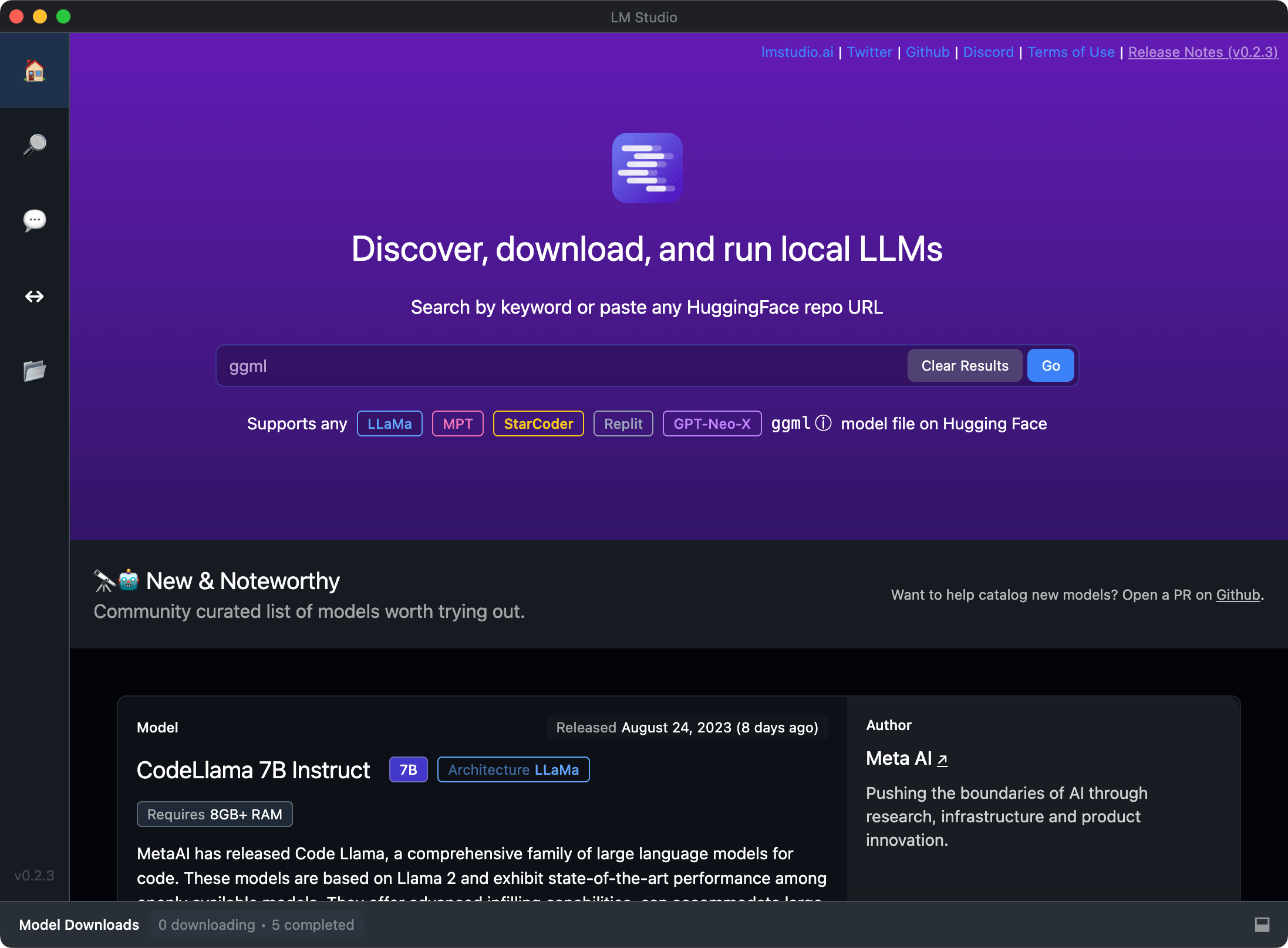 Launch LM Studio, and you'll be able to discover and download various open-source LLMs.