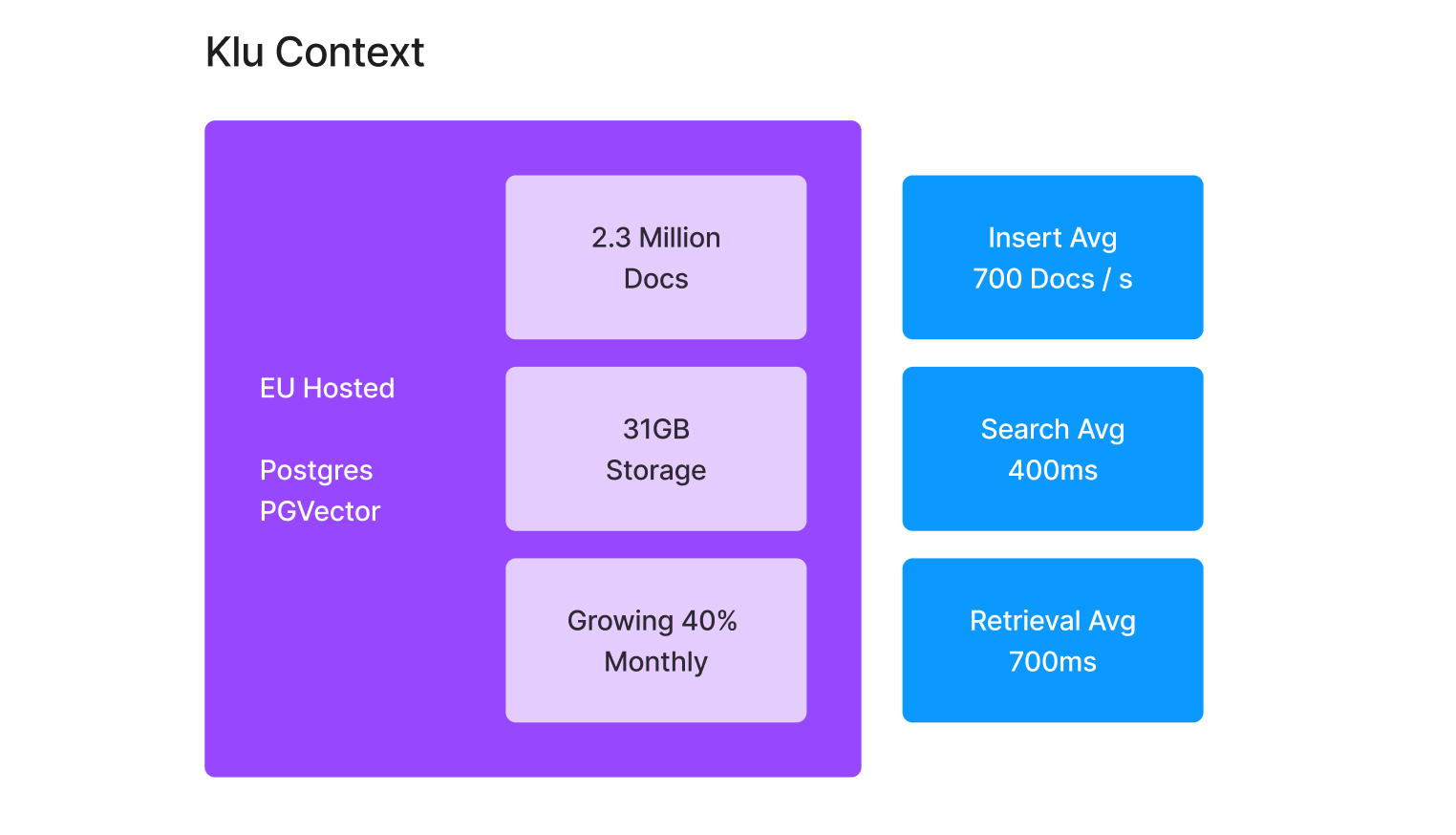 Klu began as a few fine-tuned davinci-003 models and a handful of Python scripts, but has rapidly evolved into a platform serving over 500,000 weekly requests. Klu Context is a custom vector engine built on Supabase using pgvector, which provides management of vector docs, as well as metadata filtering for multi-tenant or other advanced search capabilities.